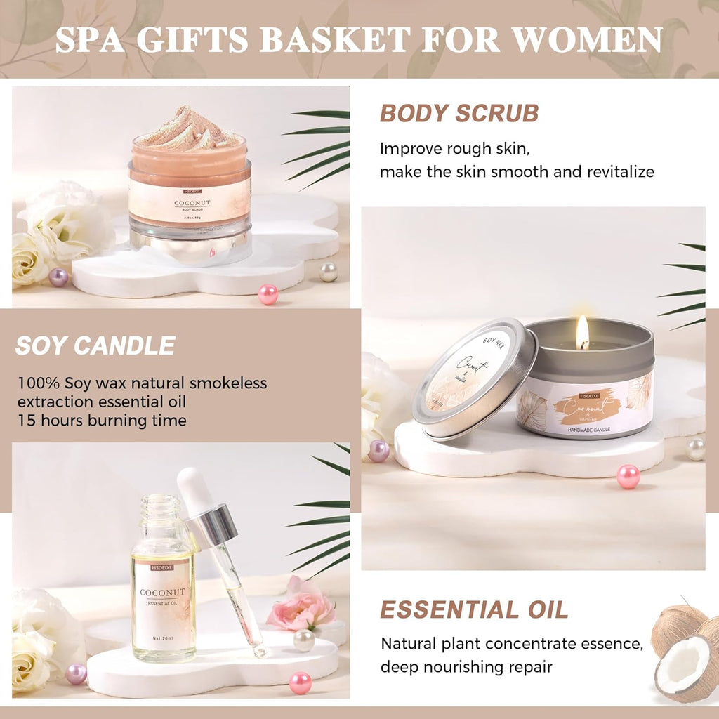 Gifts for Women – 12-Piece Coconut Bath & Body Spa Gift Basket | Luxurious Self-Care Set for Relaxation, Birthday, Christmas & Mother’s Day